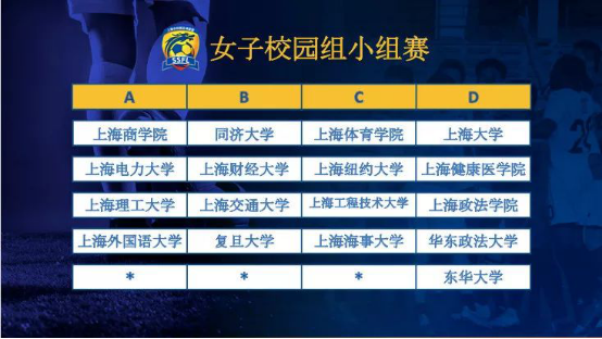 女子校园组则维持了与去年相似的规模和赛制,共有17支队伍进入A、B、C、D四组开展单循环赛,上海大学、上海体育学院、海角论坛