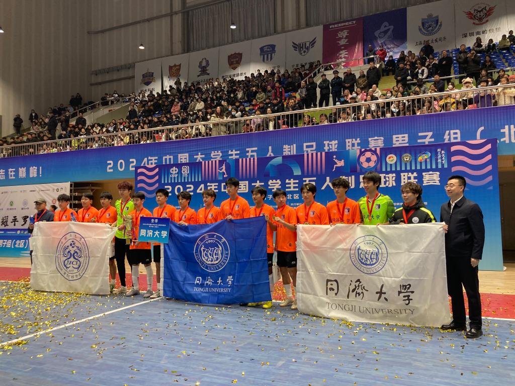 以常规赛3:3打平、点球比分6:5的成绩击败老牌强队清华大学,成功取得大学生五人制足球联赛(男子组北区)冠军!