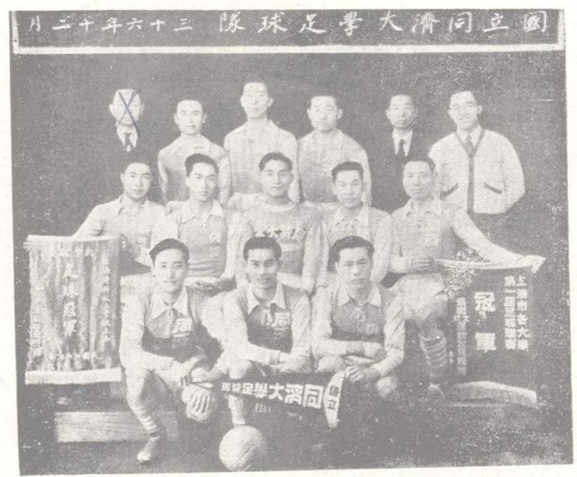 1947年3月,同济足球队获上海市大专院校足球赛冠军。